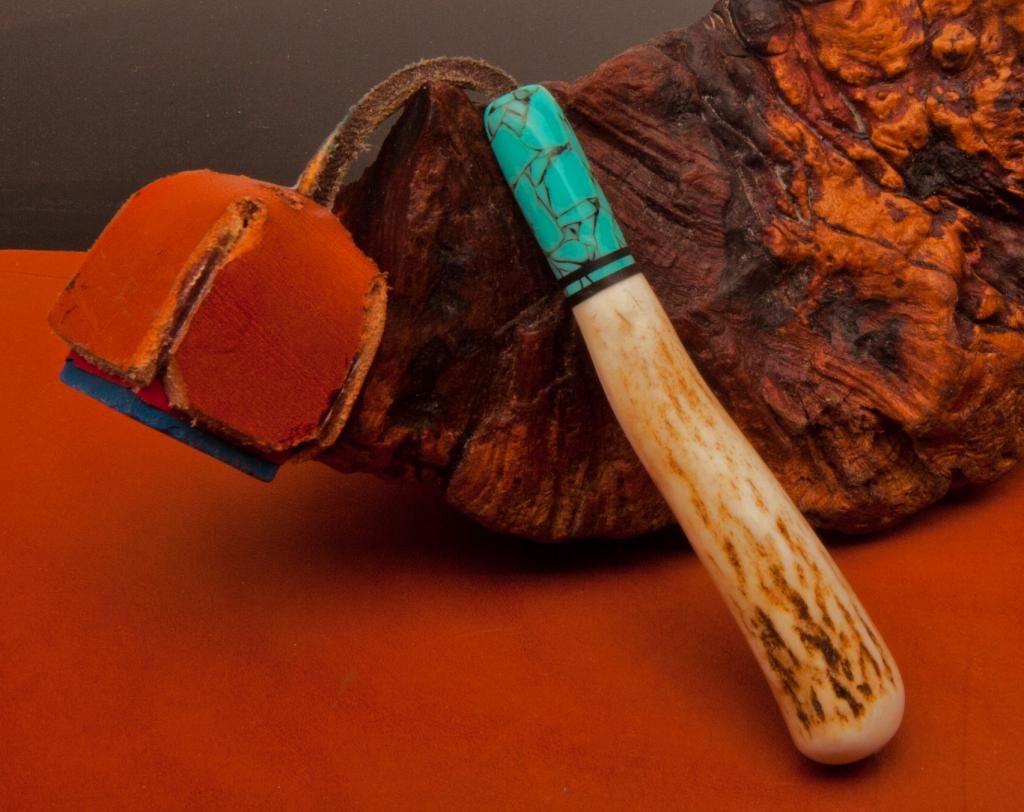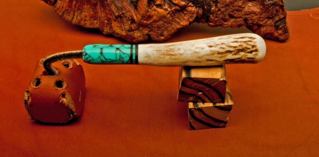 Montana Deer Shed Antler, Gabon Ebony Rings, and Acrylic Acetate Crushed Turquoise Pocket Chalker.
