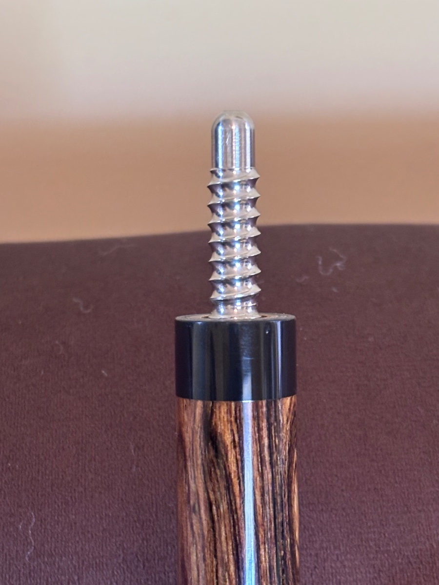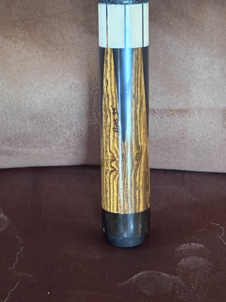 I have two cue butts made by Alan Smith of AMS cues. One is an 8 ebony point cue into figured bocote. Also has juma inlaid blocks. 3/8 10 pin. Joint size is.850. Has a black leather wrap. The weight is 16.02oz price is $250 firm