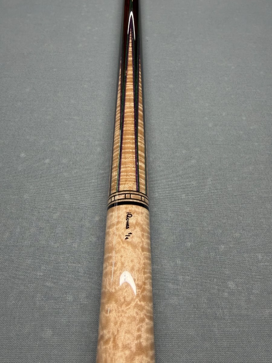 Butt Sleeve: Macassar ebony with custom curly maple window design