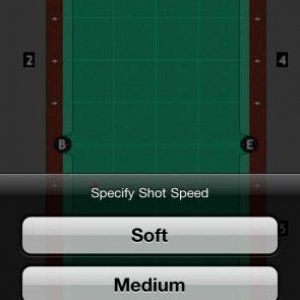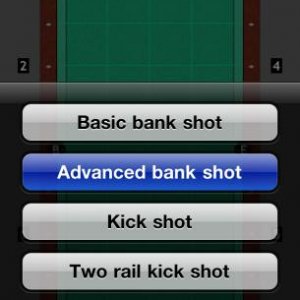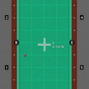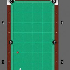 This album displays how the BSC calculates an advanced bank shot using a combination of collusion induced english and player applied english to cause the object ball to revers off the end rail by more than 1/2 of one diamond. For this shot I've selected Medium speed and one tip right english.