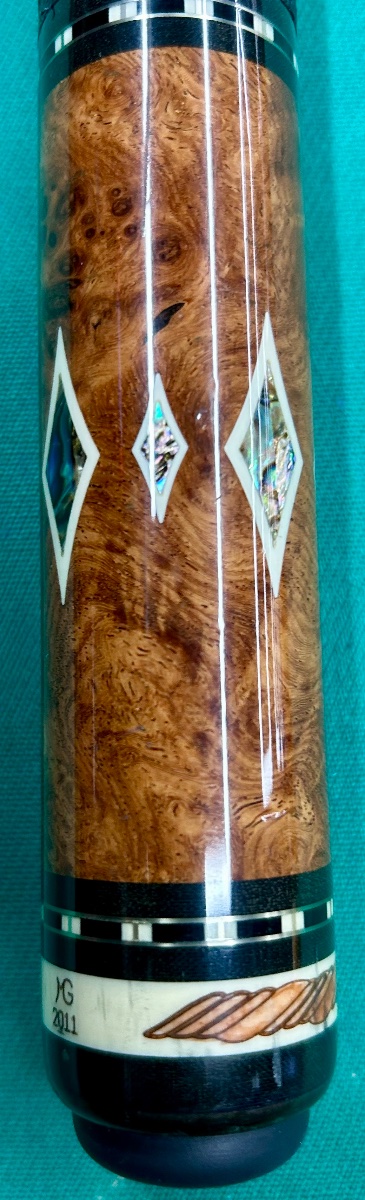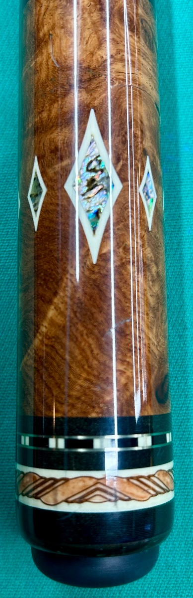 BUTT SLEEVE IS BURL WITH 8 OF THE SAME DIAMONDS IN THE POINTS