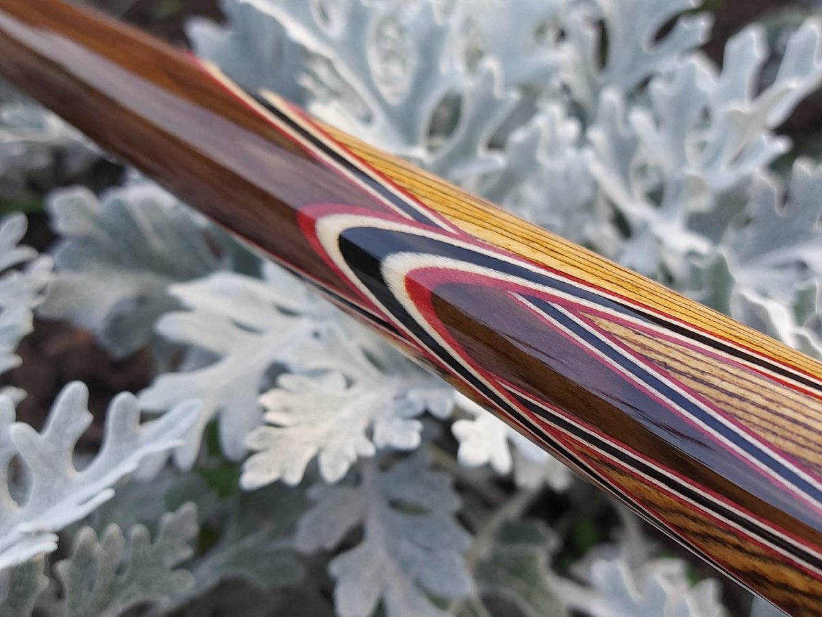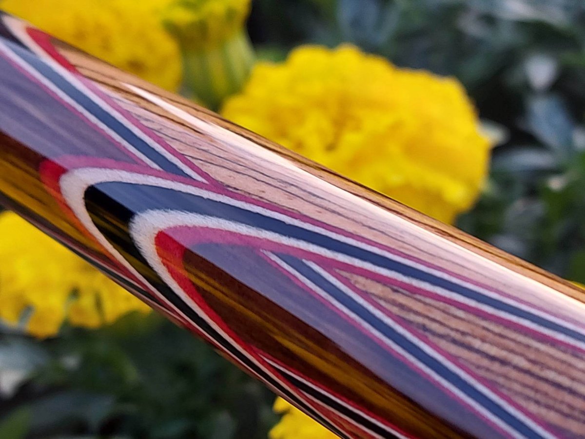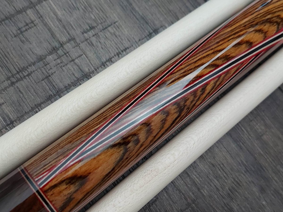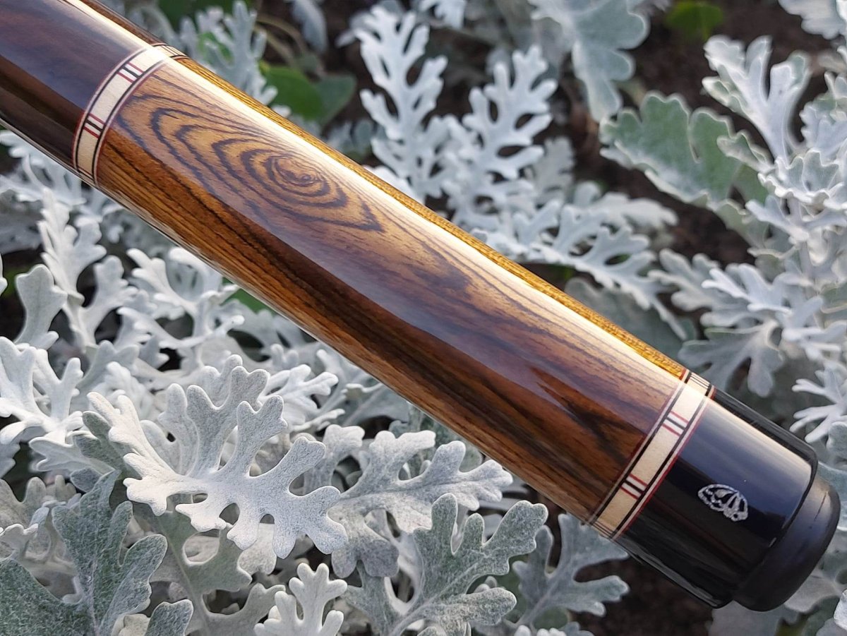 Ziricote over Bacote with 4-butterfly points of 5 veneers (Dark red, maple, Black)
