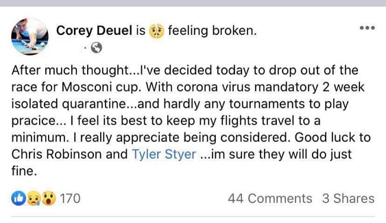 It's not at all shocking. Styer has dropped each of his last three singles matches at the Mosconi, and lost 5-1 and 5-1 in his two singles matches at last year's event. No doubt, a case could be made that Tyler should have been selected, but it was not what you'd call a no brainer.