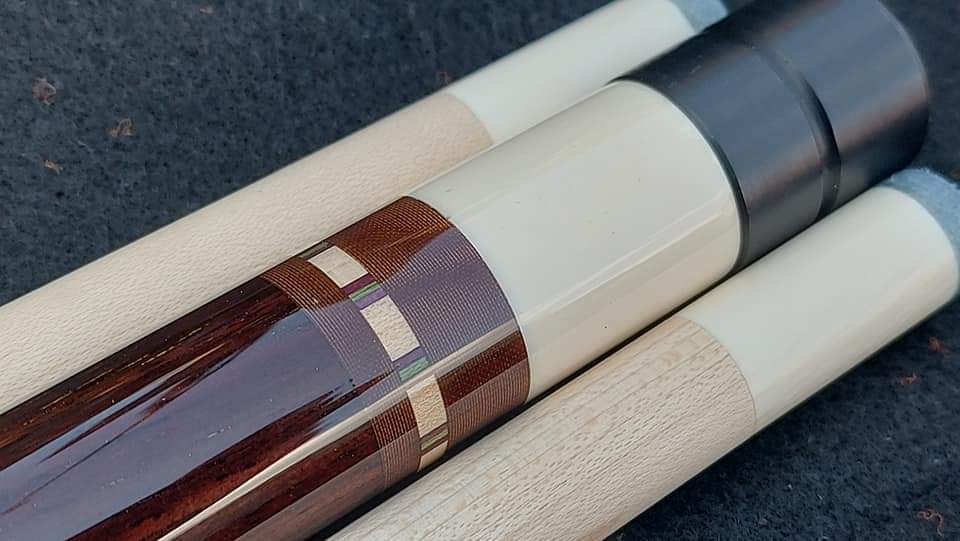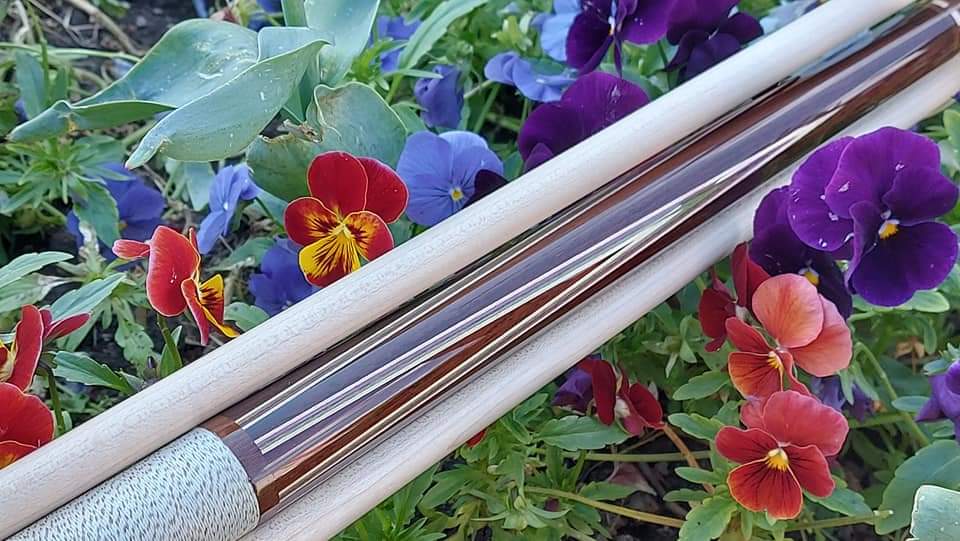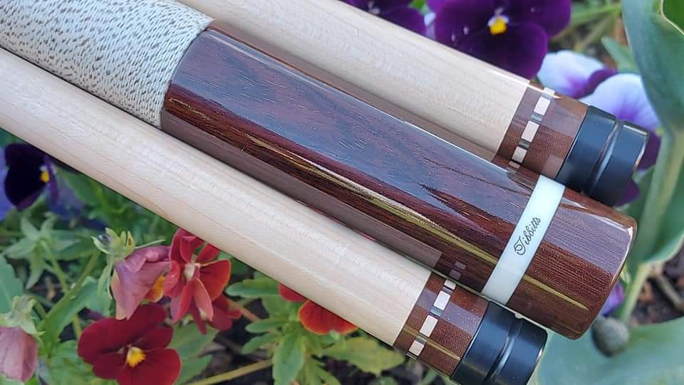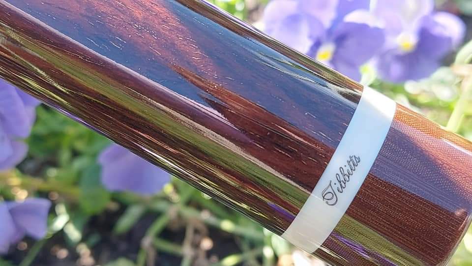 It has a natural piloted joint with fancy maple stitchwork with matching veneers and is finished up with a gorgeous Rosewood buttsleeve with a natural Hoppe ring and the Tibbitts logo.