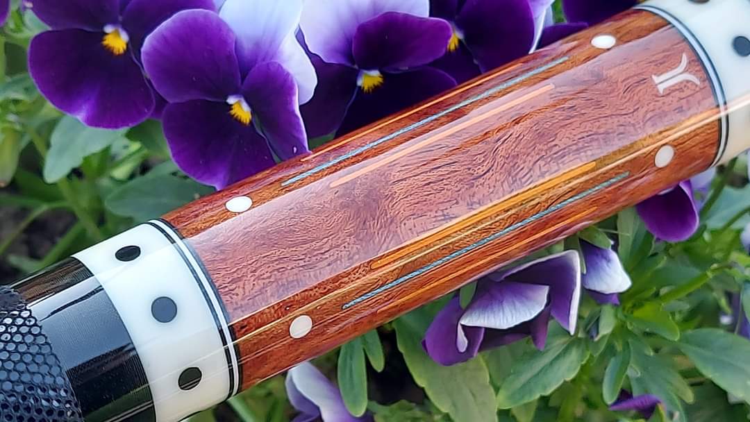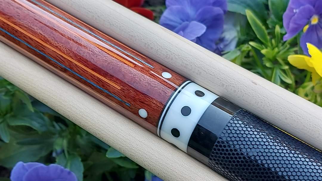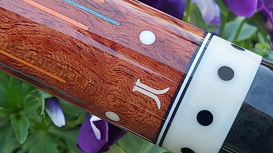 His workmanship is superb and designs are always unique although i designed cues that he built me. Being Native American has lots of impact on uniqueness in his style.