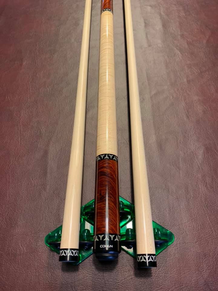 Beautiful new wrapless Eddie Cohen Merry Widow. It features a highly figured Cocobolo forearm and butt, wrapless Curly Maple handle, fancy rings at a, b, c, d locations, and has a 3/8x10 modified copper pin with a black phonemic joint sleeve.