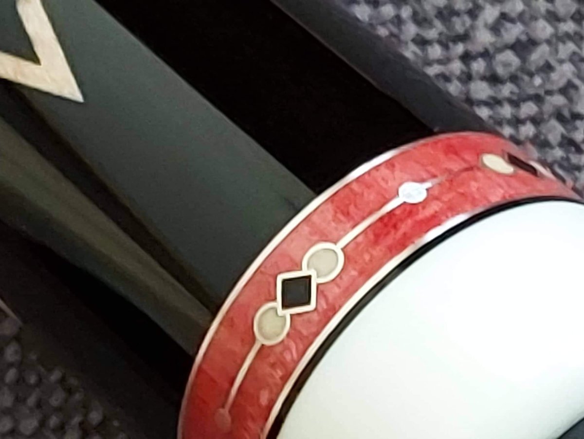 5 Ebony, 5 Pink Ivory points and Maple recuts. Beautiful ringwork that is trademark of Mike with some silver and Ebony. Elephant Ear wrap.