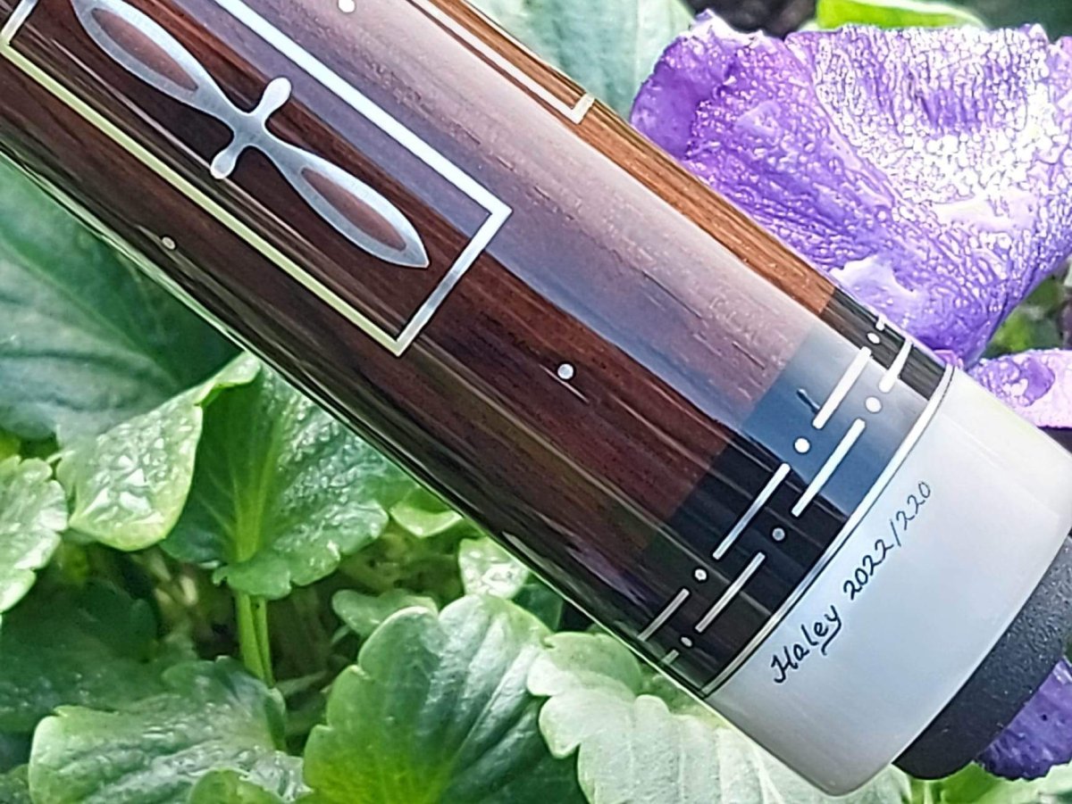 Getting a nice Ron Haley cue feels like winning the lottery. He makes a very limited number of cues each year and has something like a ten year waiting list. But what makes them more difficult to obtain is that when people get them, they seldom let go of them. I was fortunate to get this one, not just because it's a Haley, but because it's one of the prettiest I've seen.