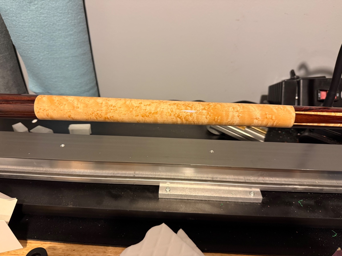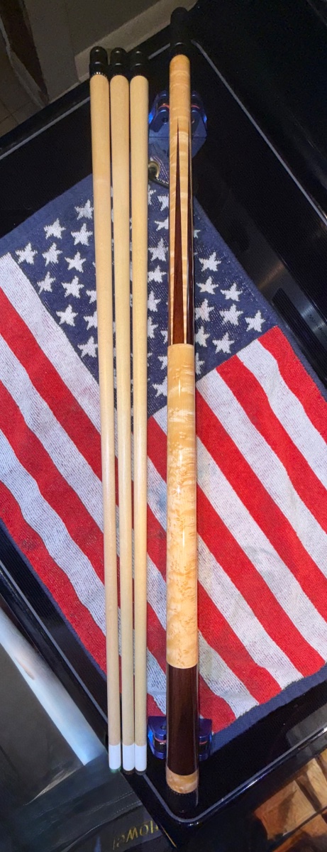 . Butt has a few small dings in it as itās been played but nothing through the clear and I couldnāt capture them in a pic. I polished and cleaned the shafts last night and it looks amazing and no dings or dents in the amazing shafts with the older wood used they are killa!!!!!! This is a paroblic cue from the originator of the paroblic cues shop so there is the tiniest bit of movement at the joint as to be expected but it rolls amazing for one. It rolls amazing considering on rollers and the shafts do also but I will always say a tiny bit of taper roll on the shafts to be safe but you will be happy with this amazing offering