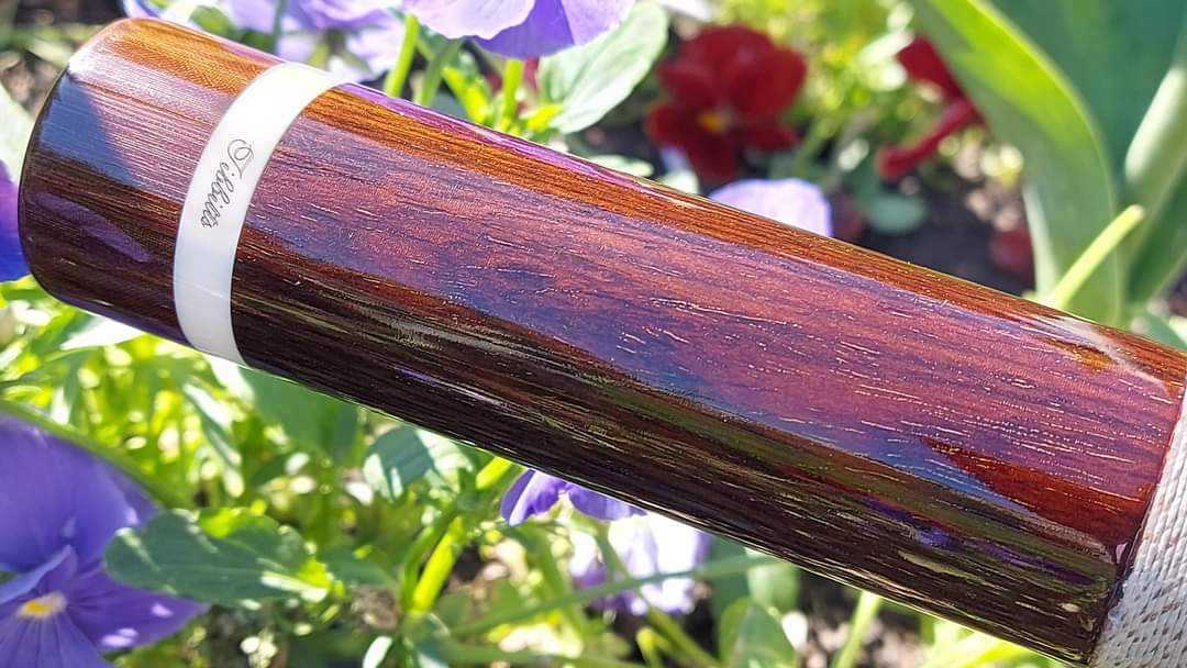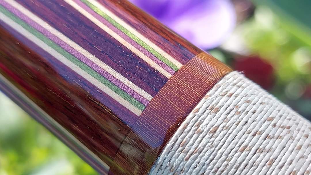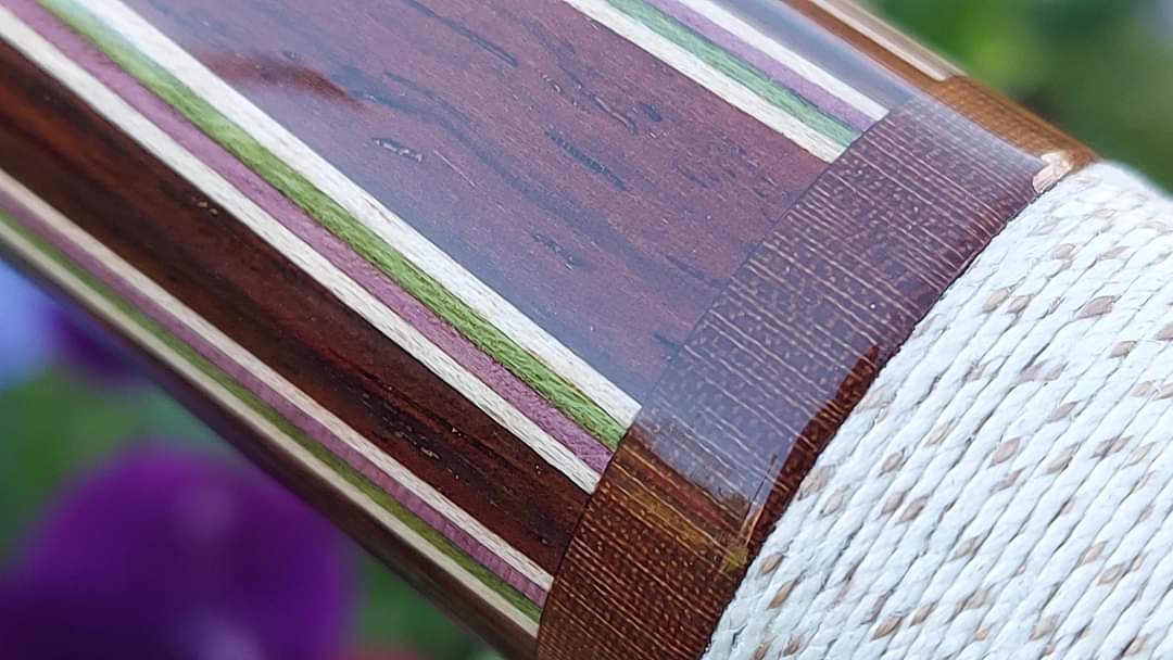 Brazilian on Brazilian Rosewood! All good stuff and a Cortland Linen wrap. Custom anodized weight bolt. Great feel and balance.