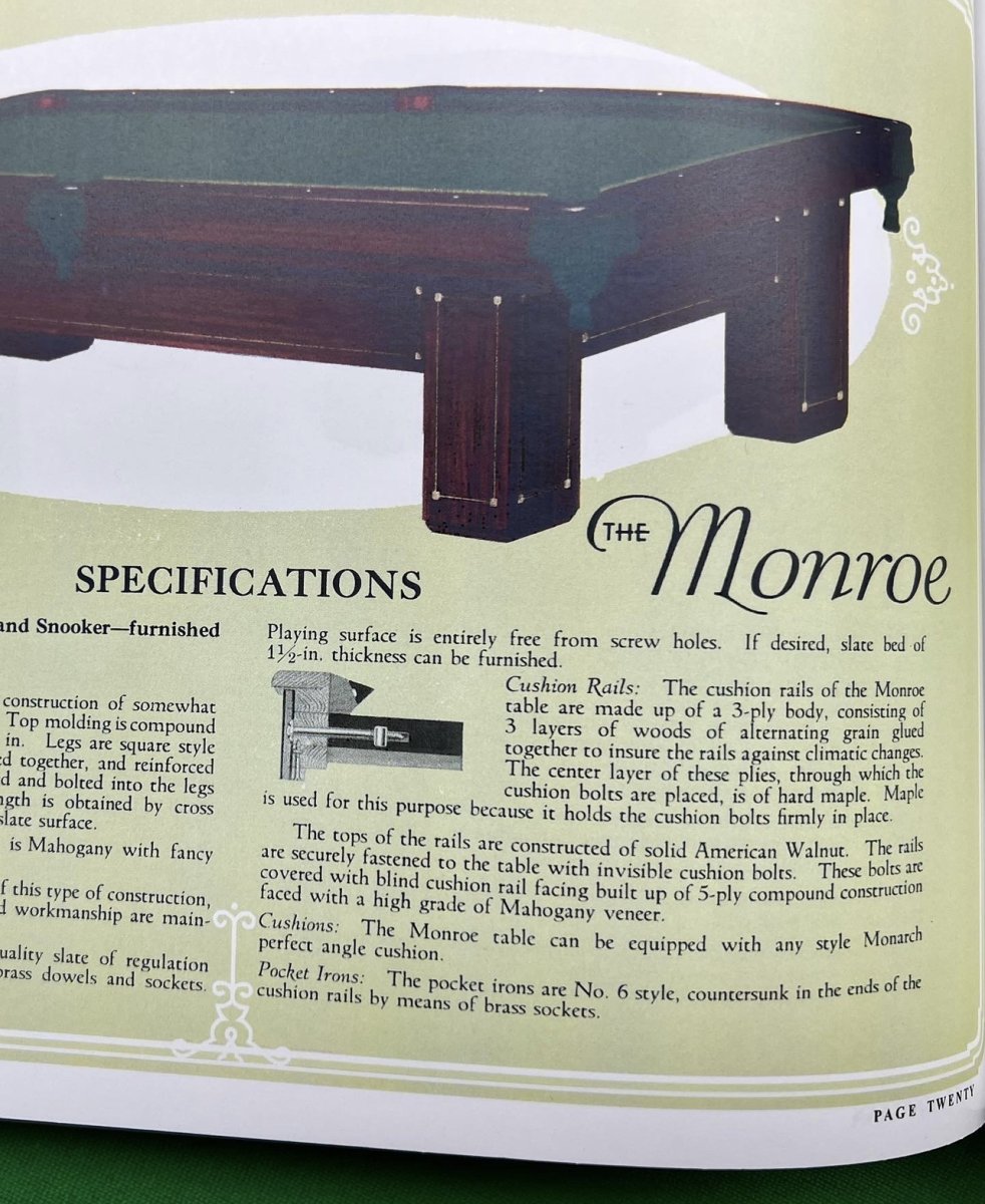 Hi, I have a 1926, 12x6, 8 leg Brunswick Monroe snooker table. The last owner put regular pool table profile rubber cushions on it.