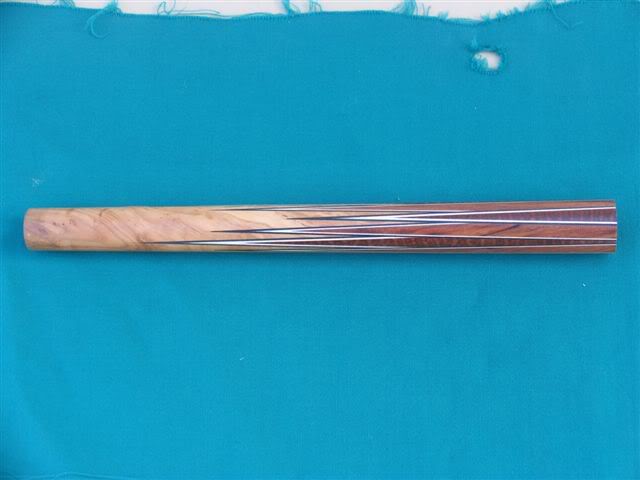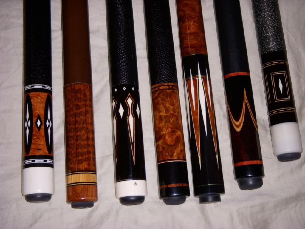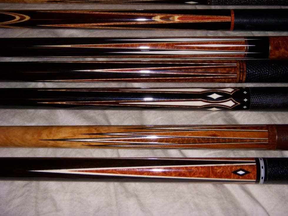I designed this cue back in '06 and Paul did a fantastic job. At the time I had searched far and wide and I never saw another cue like this I love the woods and the traditional yet original (IMHO) design.