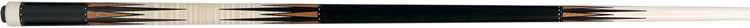 The Merlin cue begins with a forearm and butt sleeve of Madagascar Ebony. It has a Holly wrap section with six Ebony framed Leopard Burl points intermittent with six Ebony points extending from the forearm and matching points coming up from the butt sleeve.