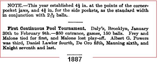1887 - 4.5" pockets - First 'Continuous Pool' Match