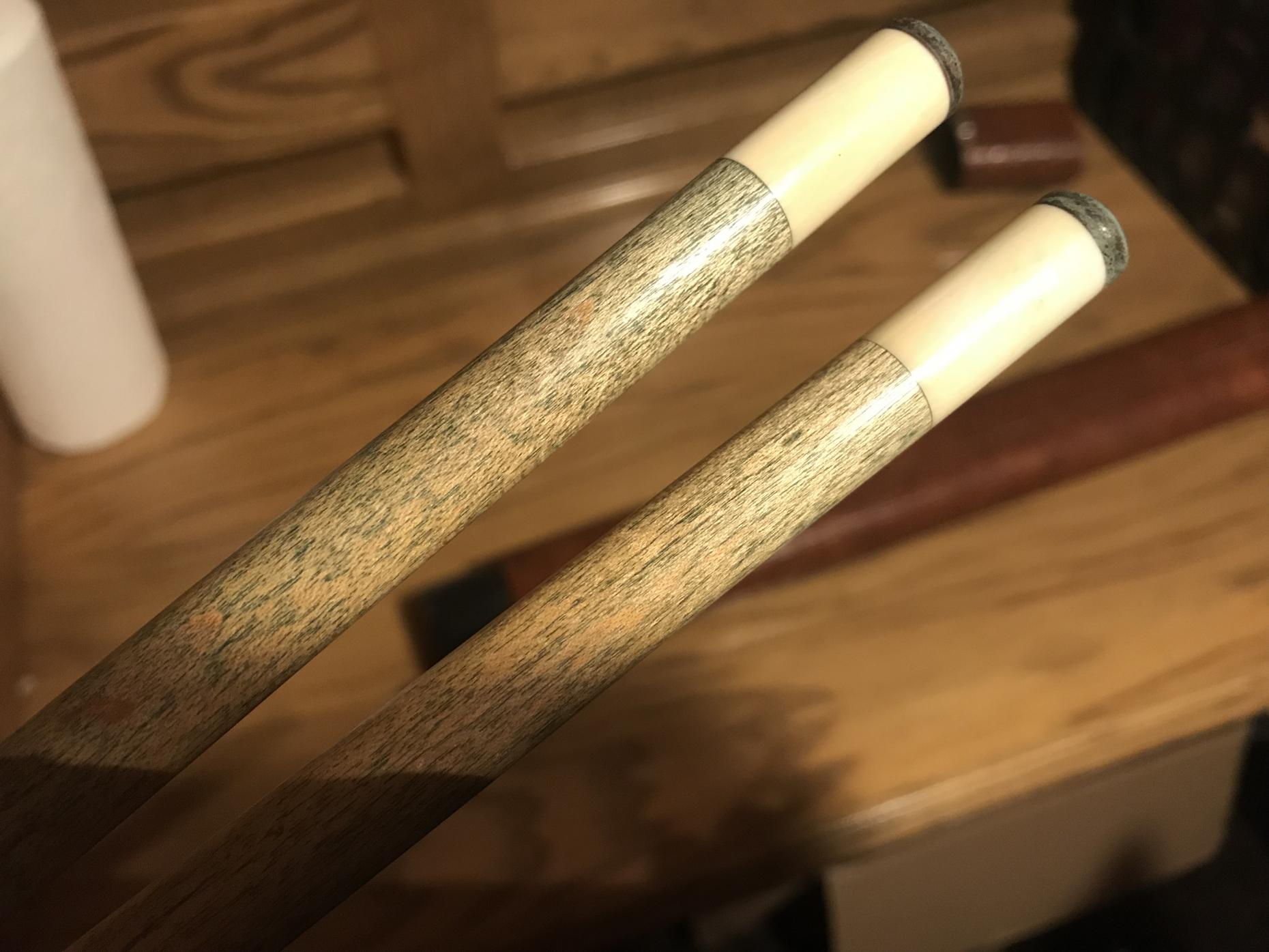 call or text (405) 542-7893 or pm me here $1800 obo And I’m open to offers. there was a thread on this cue in the main forum if it sells here some of the money will go to the forum in some shape or form. since y’all helped me identify it. I’m thinking about paying for gold memberships for the buyer and the guys who helped indentfy the cue. This is for a vintage Richard black pool cue. i spoke to Mr. Black on the Phone and he confirmed it was one of his from the late 1970's before he started signing them. im awaiting his email confirmation. it has ivory ferrules The cue is straight and in overall very good shape wrap is in great shape. The only issue is one of the brass shaft pilot where it screws together has came unseated and will need repaired. you can see it in the picture. But it screws together flush and works just fine the shop I had look said it can be professionally fixed for pretty cheap. The case lock is broken and the plastic in the case has some cracks. Free shipping.