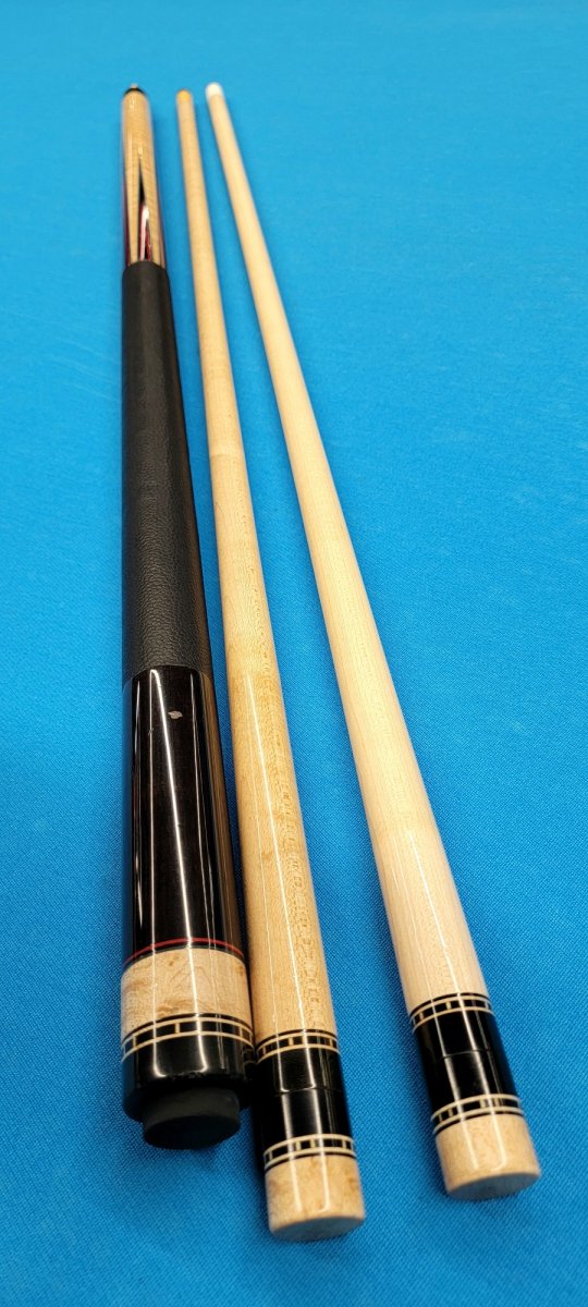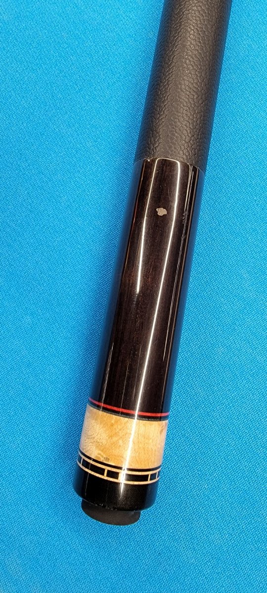 The cue has a black leather Wrap installed and a few battle marks.