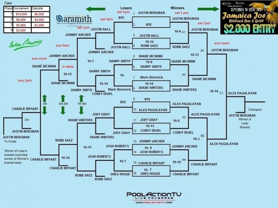 1pm 9/19 Robb Saez vs Justin Bergman $2000 entry Long Race 8 Ball