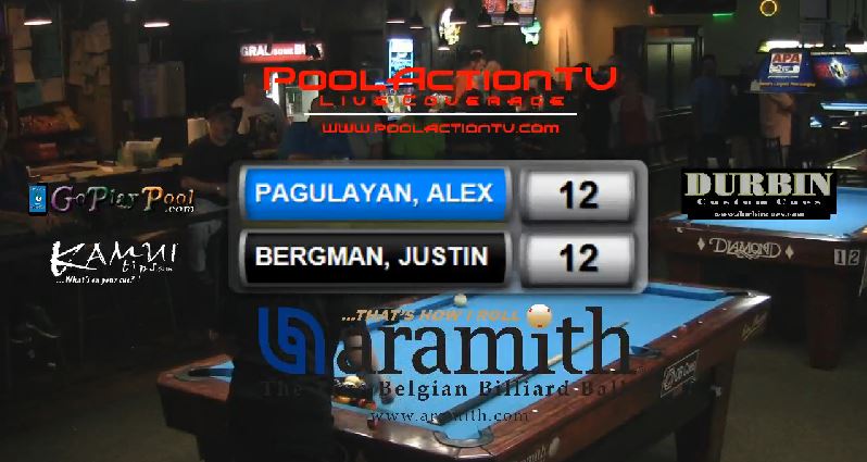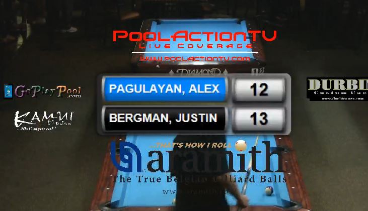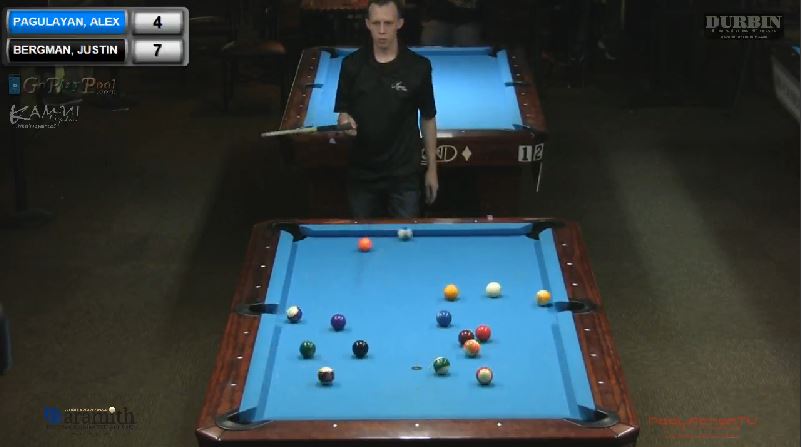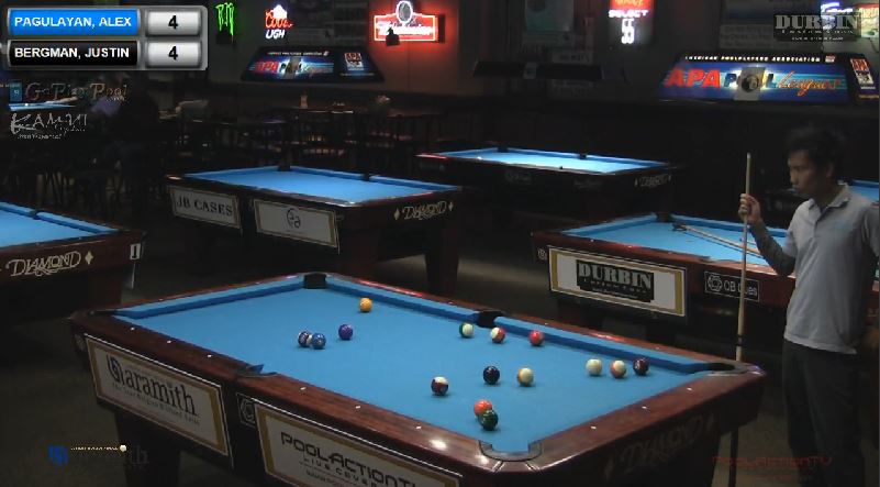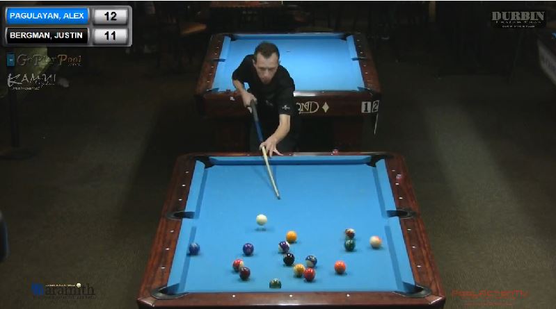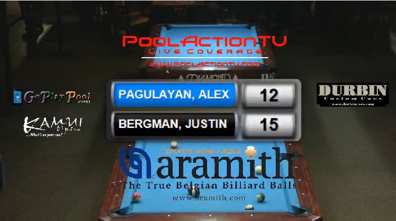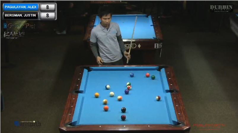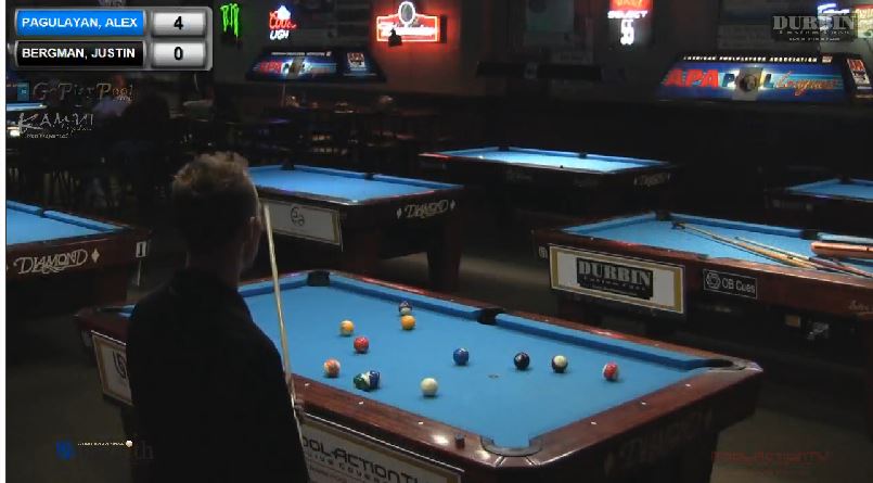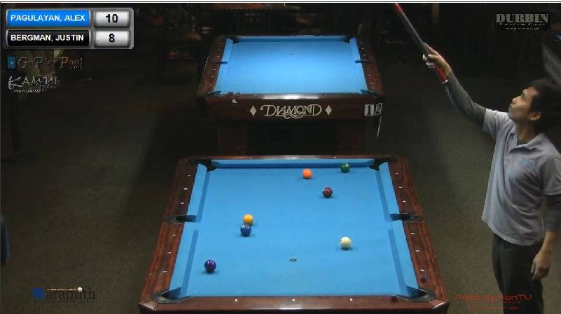 Alex missed a 3-ball to let Justin in...Justin botched shape on the 8-ball