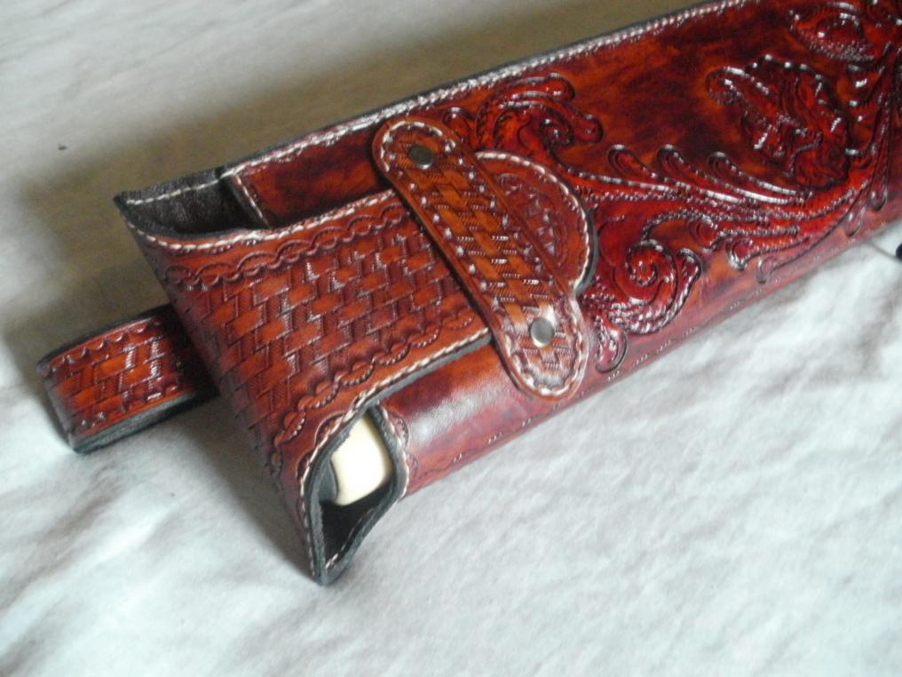 This is a soft case that we just finished. It holds 1 butt and 2 shafts. Full basket weave at the back of the case and an extra long design One of a kind at the front of the case. We also add an small pocket on the shoulder strap with a flap and a zipper on the side to get easy acces to the inside.
