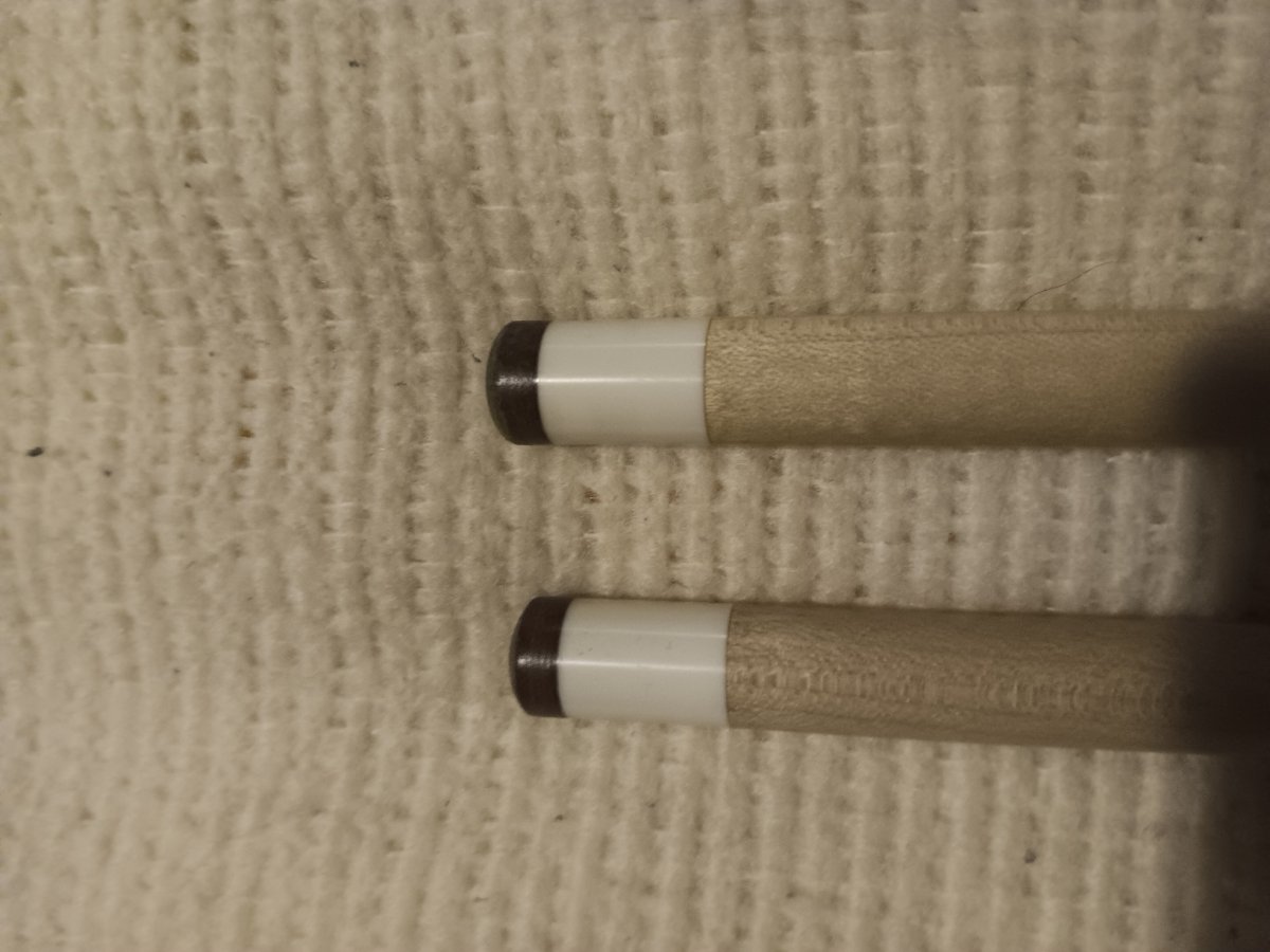 They both have a slight taper roll but the tip and ferrule stay on the table throughout. They came off a Prince/Davis cue and are in excellent condition. $90 for the pair including shipping.