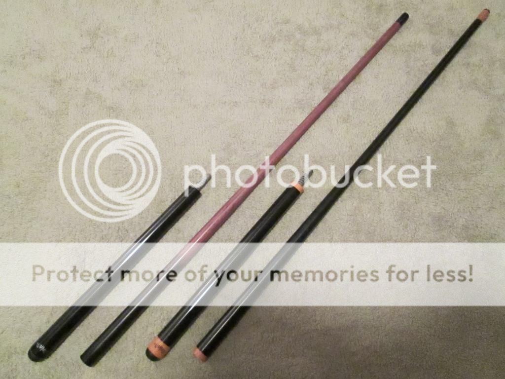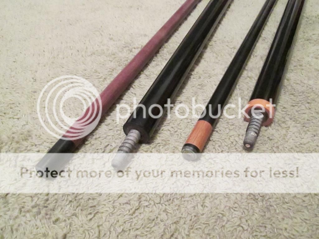 The first cue is the mini TKO that is full purpleheart with a G-10 Radial pin and a one piece G-10 tip/ferrule combo.