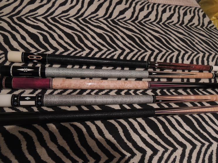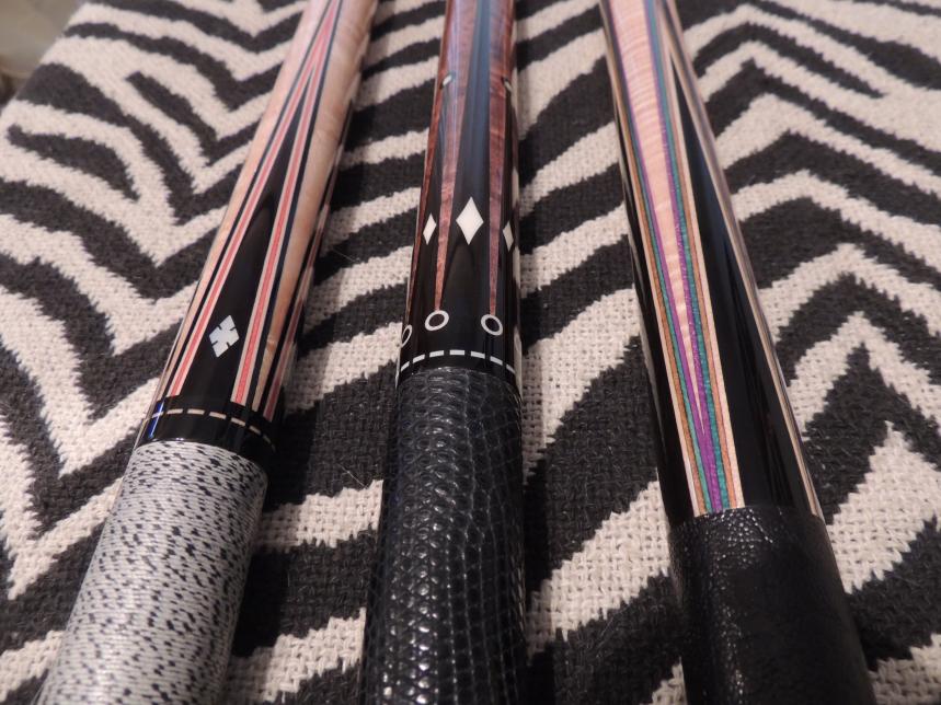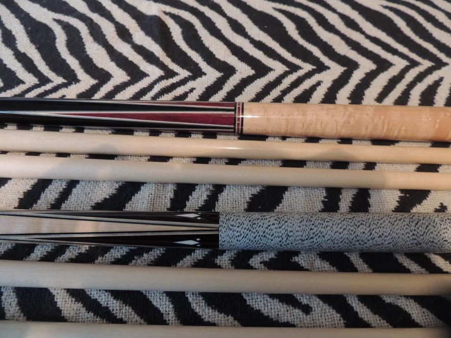 Thanks for all the comments gentlemen. I was happy to finally get some pics worth posting. The sugartree is the hoppe. Not sure who did the blank for it but it is sweet! The wrapless s.w. i just got this summer pin 333-13 so i got pretty lucky to get an ebony forearm cue. Nate,