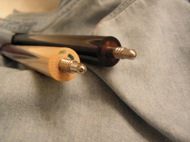 2 jump cue handles only for sale, a Lucasi and a Bunjee , both are in like new condition other than the sharpie mark on the Lucasi, $25 OBO Shipped USPS