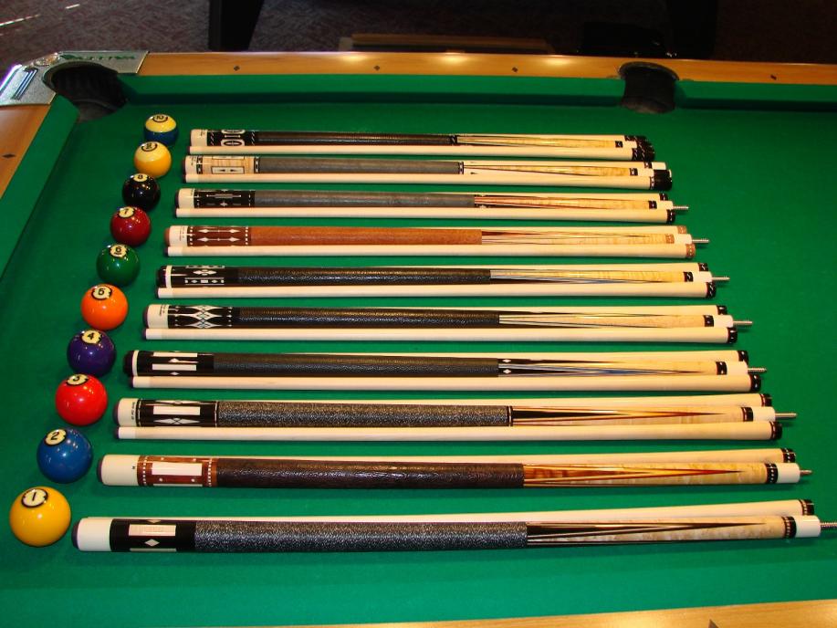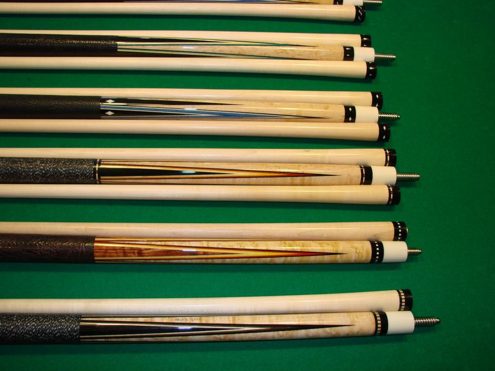 I am one of a few dealers for Robert Harris custom cues and am running an end of spring sale with a 25% or more discount on his cues. All of the cues are new with a couple test hit to find out the difference the joint configuration makes, which is very subtle. The shafts on all of the cues have the “Larry Nevel” taper, capless ferrules, and Ultraskin soft tips. All cues weigh around 19 ounces. Cue number 10 is my personal player and is not for sale.