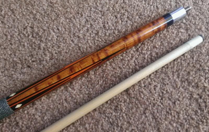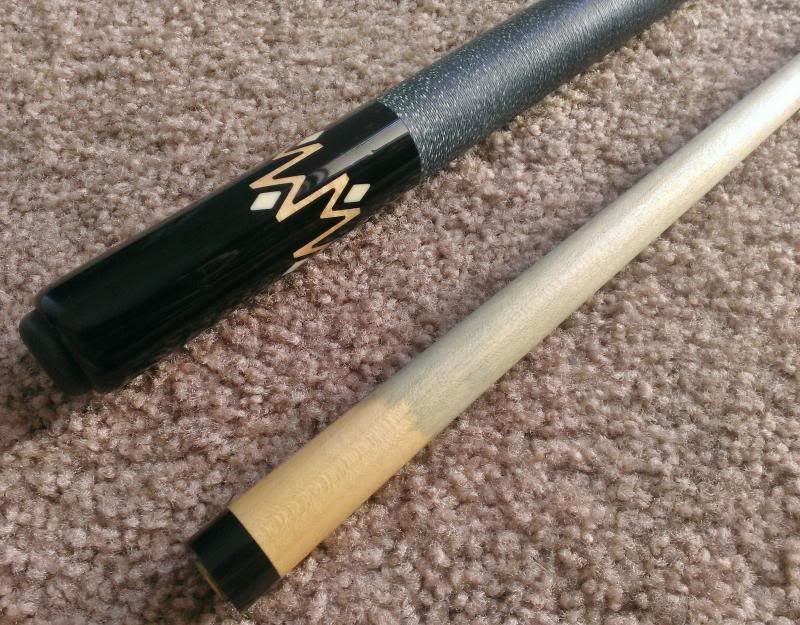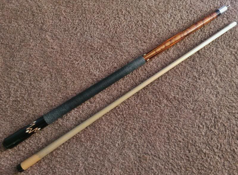 Cue rolls straight. In very good shape besides your normal scratches and nicks here and there along with the wrap having some discoloration as you see in the photos. All in all it is a nice cue that plays very well. I do not have my scale or micrometer but I would put the weight at around 19oz. and the shaft at around 13mm. Price is $250.