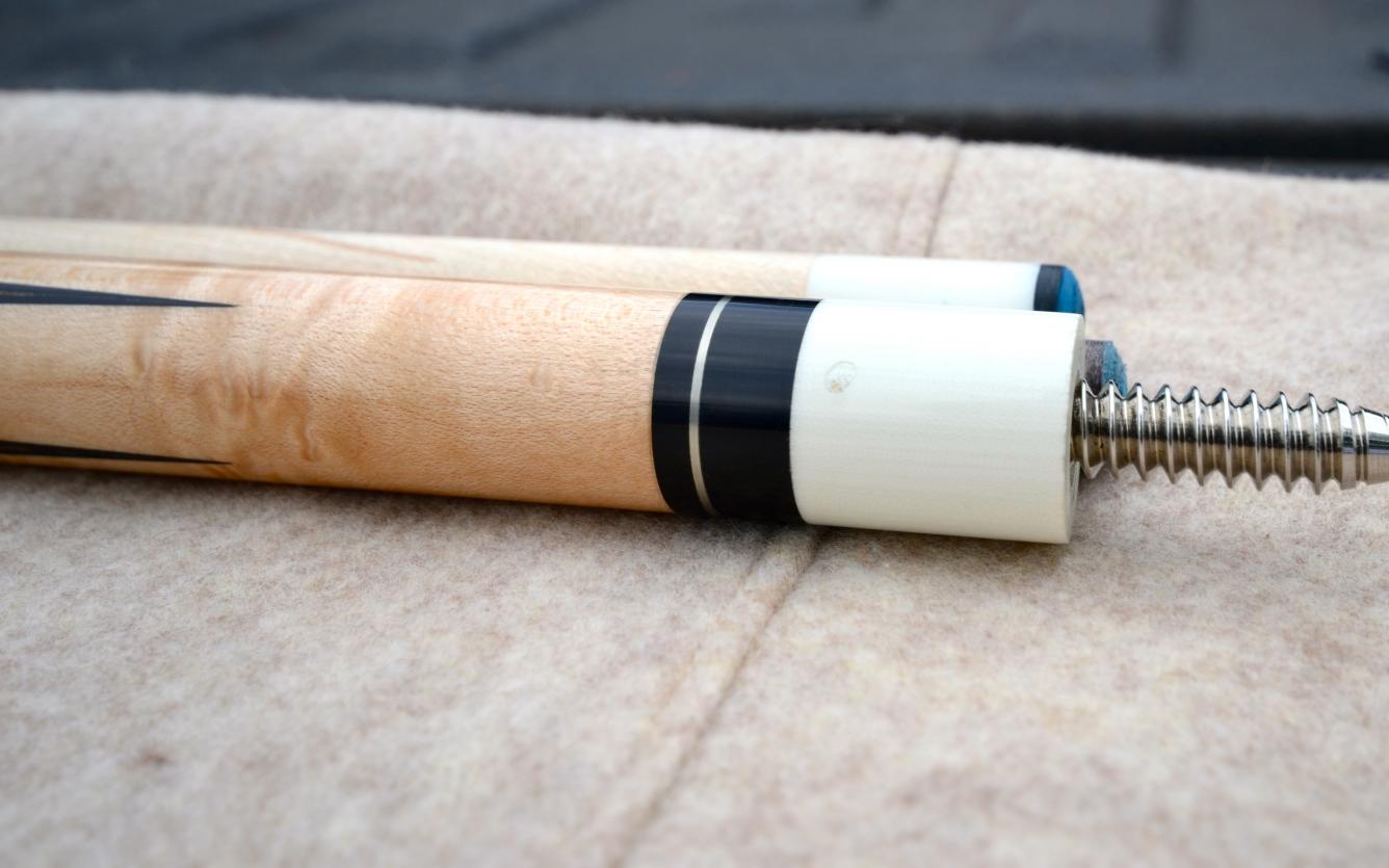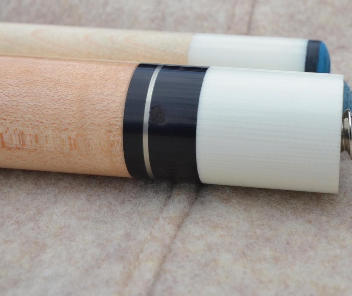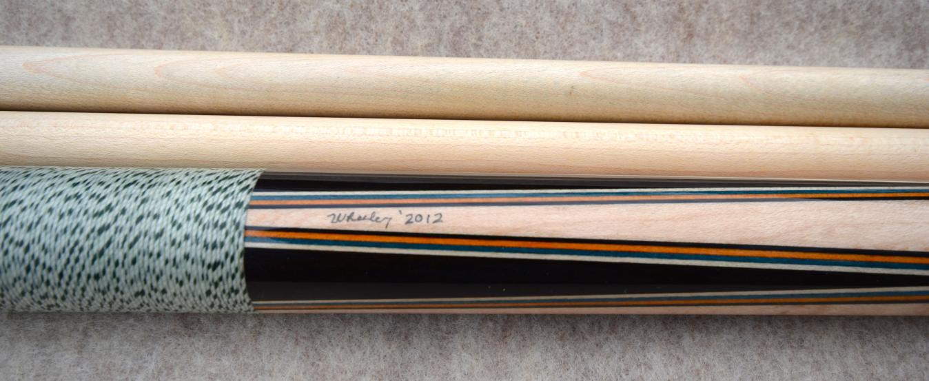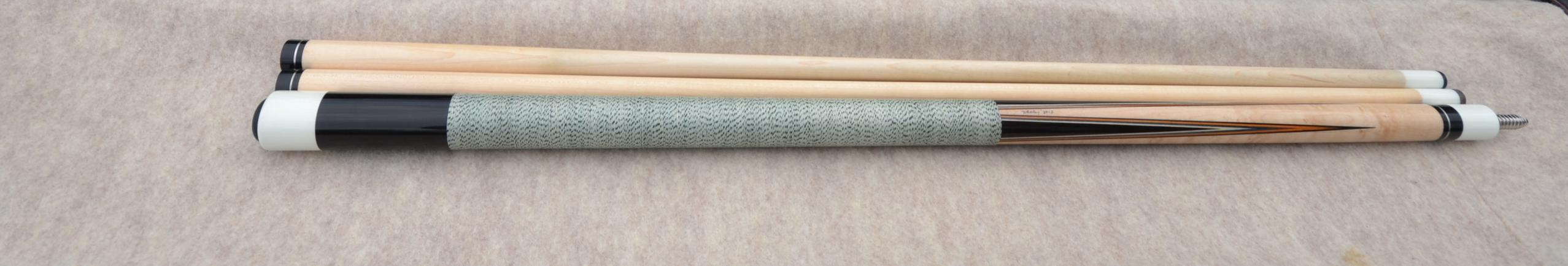 2012 old school 4pt from the Mike Wheeler. No cnc, no coring just old school perfection. This is a monster playing cue. Nothing fancy, beautiful veneered points, ebony into birdseye, perfectly balanced and has one of the nicest tones when hitting the balls I've ever heard. Joint,ferrules and buttcap are synthetic, not sure what it is called but Mike tells me it's harder than steel and I can vouch that it plays fantastic. This cue has two dings in the finish, one in the joint and one in the joint collar, not sure how these got there, but you can see them in the pics. Because of these dings I'm offering this cue up at a steal of a price SOLD This cue is absolutely the best deal on the forum right now, everything is straight and satisfaction is guaranteed. Don't miss this one, it is a hell of a cue at a steal of a price.