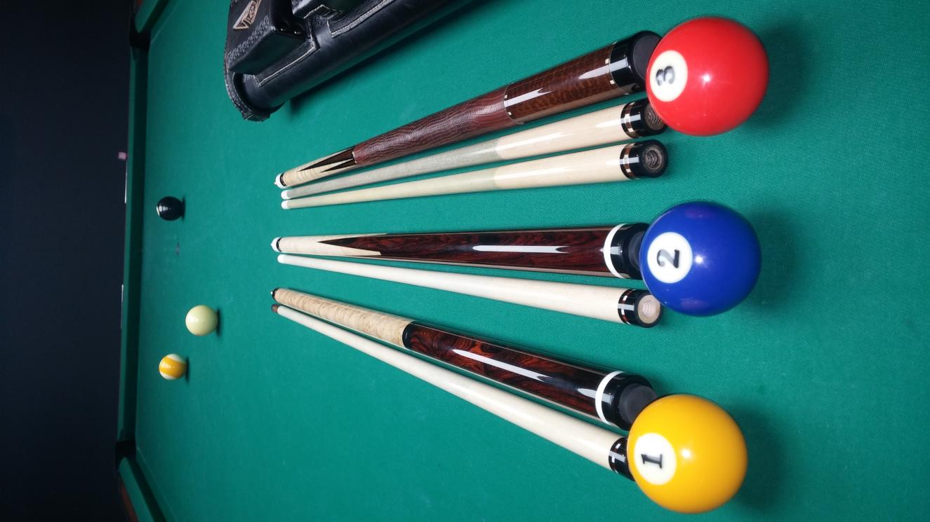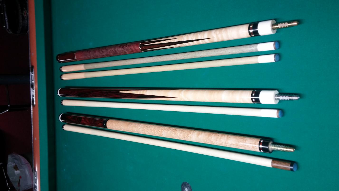 I had these made by Pete earlier this year ... I usually play 1 pocket and use my Omen 8 pointer so these beauties just sit in my case.... Not getting much use and They definitely deserve to be in action!!! ..
