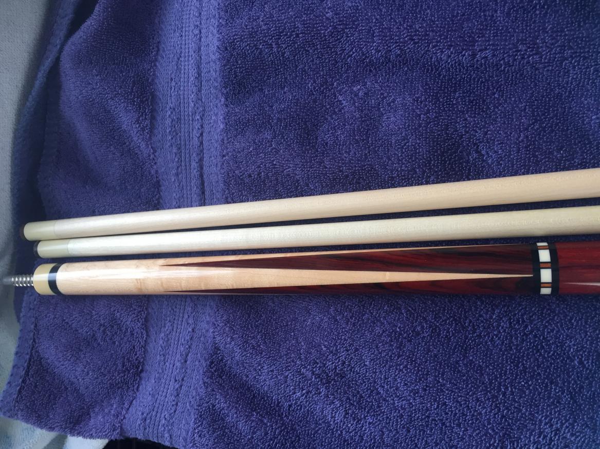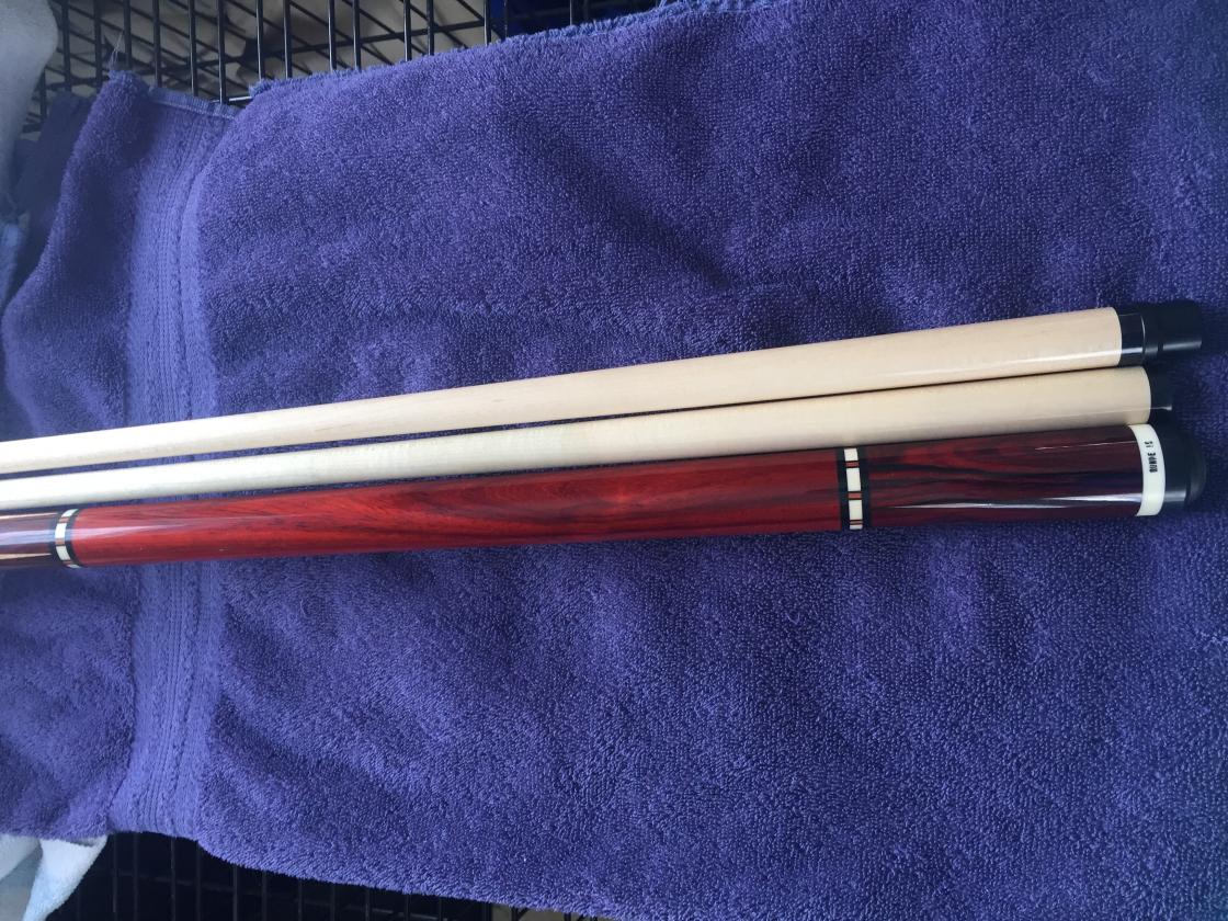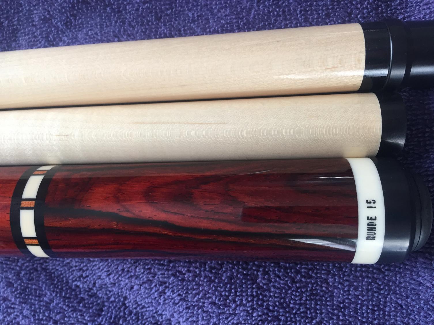 Ivory Joint collar and ferrules. Shaft without the joint protector has a bit of a roll to it, neither tip or joint leave table. Not bad when together. Other shaft has been test hit only, and is straight.