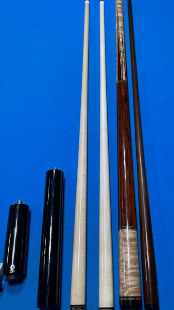 2017 Sugartree , razor sharp recut points, Cocobolo and birdseye (I think). Great shape with only a minor ding or two in the clear coat. Nothing major at all as it was cased when not playing or in a climate controlled pool room.