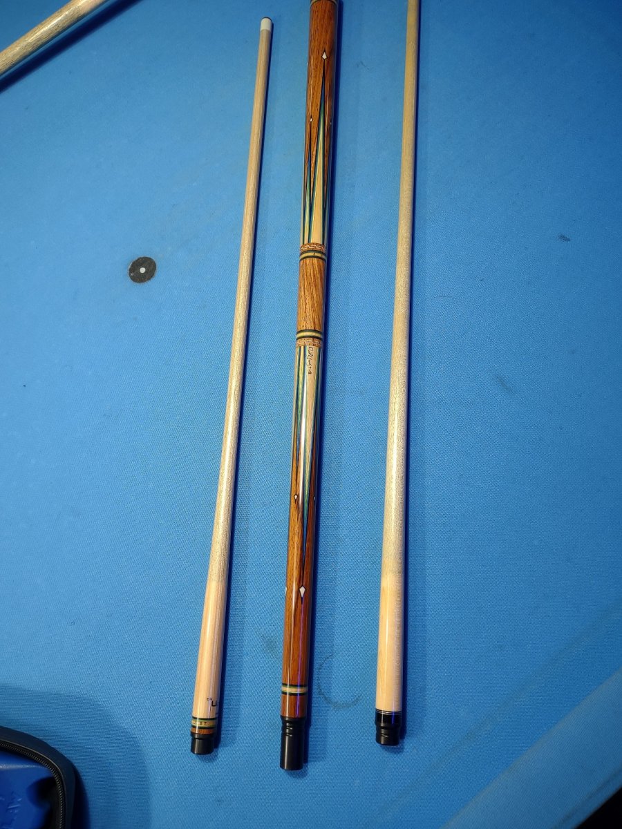 odessajerry Registered Mar 20, 2023 #1 Minor chip on butt. Beautiful cue and great hitting. Original ower from 2019 Allen Hopkins open amateur 9 ball tournament. It is 19oz and has an Ultra shaft and a Danny Green custom shaft. $1100. Thank you, Jerry Attachments IMG_20230320_222912.jpg 224.2 KB · Views: 236