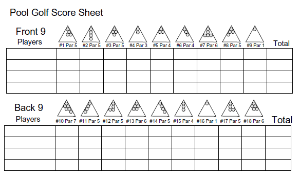 Here is a score sheet with the 18 shots. It is available in a full-page version on the page http://www.sfbilliards.com/miscellaneous.htm