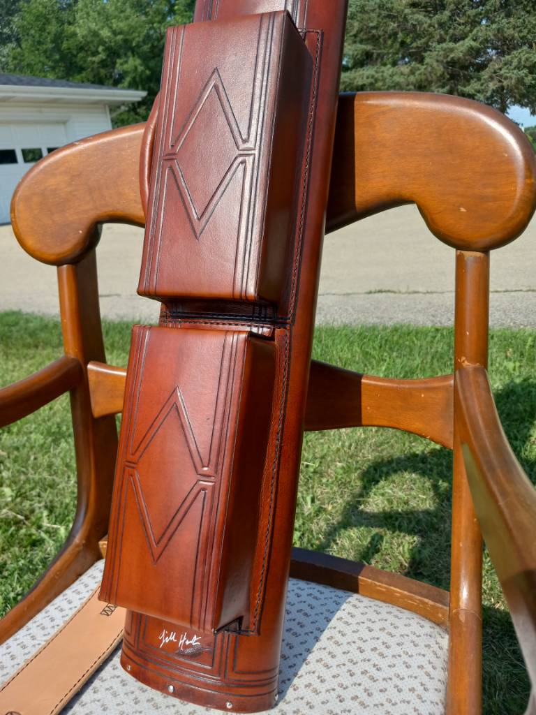 Hand-carved and hand-stitched, this case is made of Spanish Veg-Tan leather and built on a 3 x 4 Ultrapad interior.
