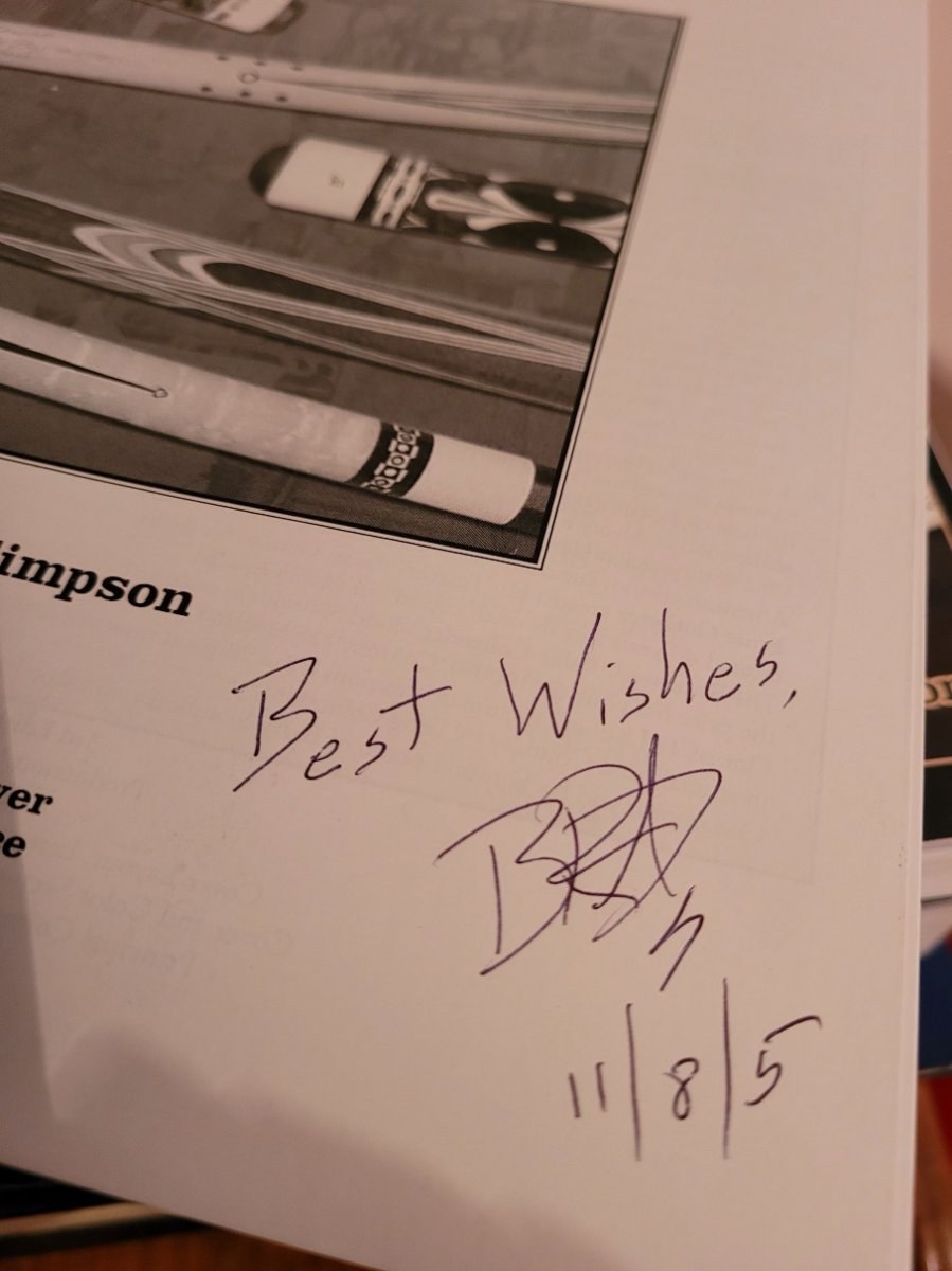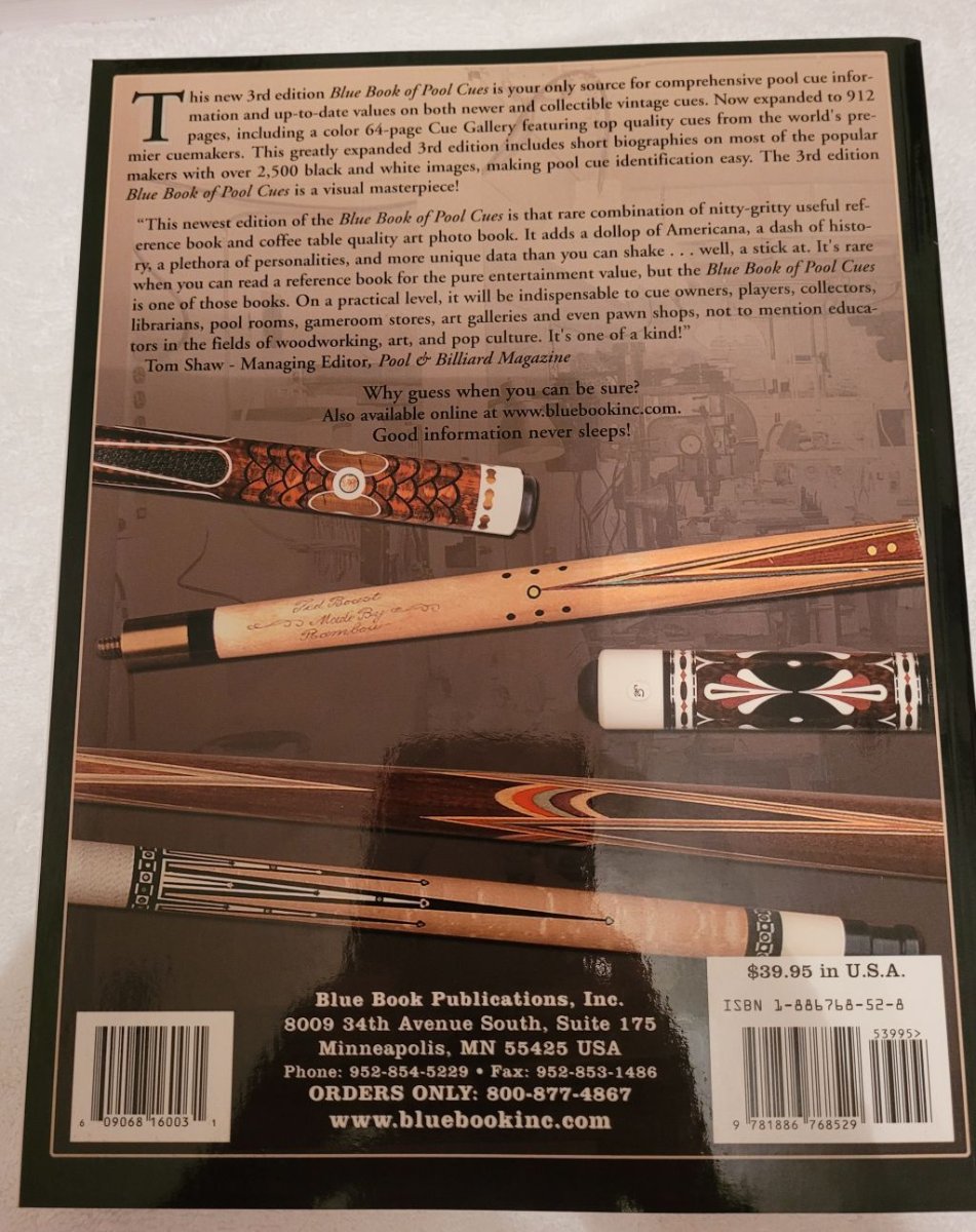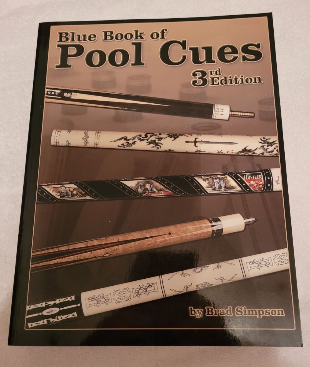 New Unused Condition 3rd Edition Blue Book of Pool Cues autographed by author Brad Simpson.