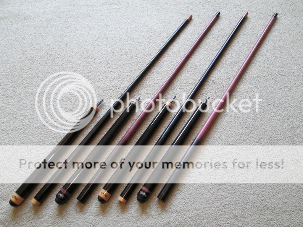 The mini Mamba's (cues #1 and #3) have a one piece phenolic tip/ferrule while the mini TKO's (cues #2 and #4) have a one piece G-10 tip/ferrule.