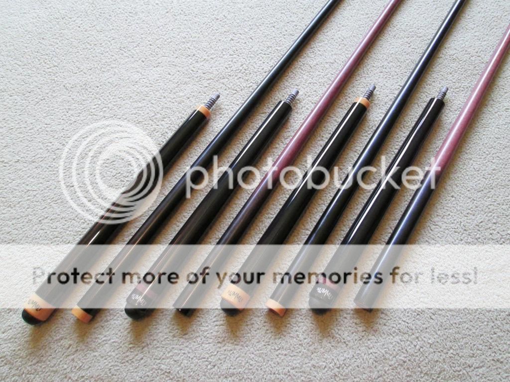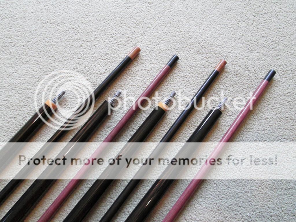 All 4 of these jumpers are solid purpleheart butt and shaft. The joint pins are Radial G-10. They are mini versions of the Summit Mamba and Summit TKO breakers and break/jumps.