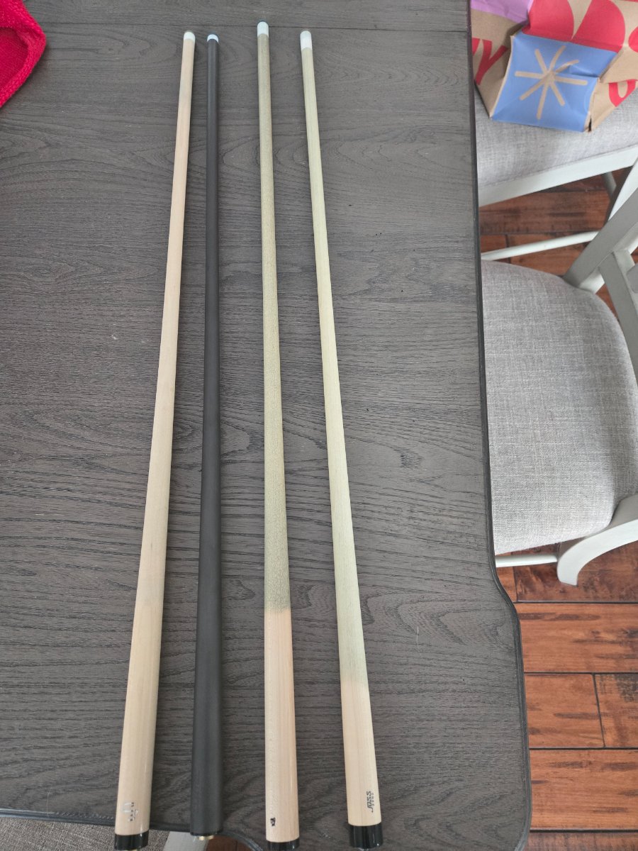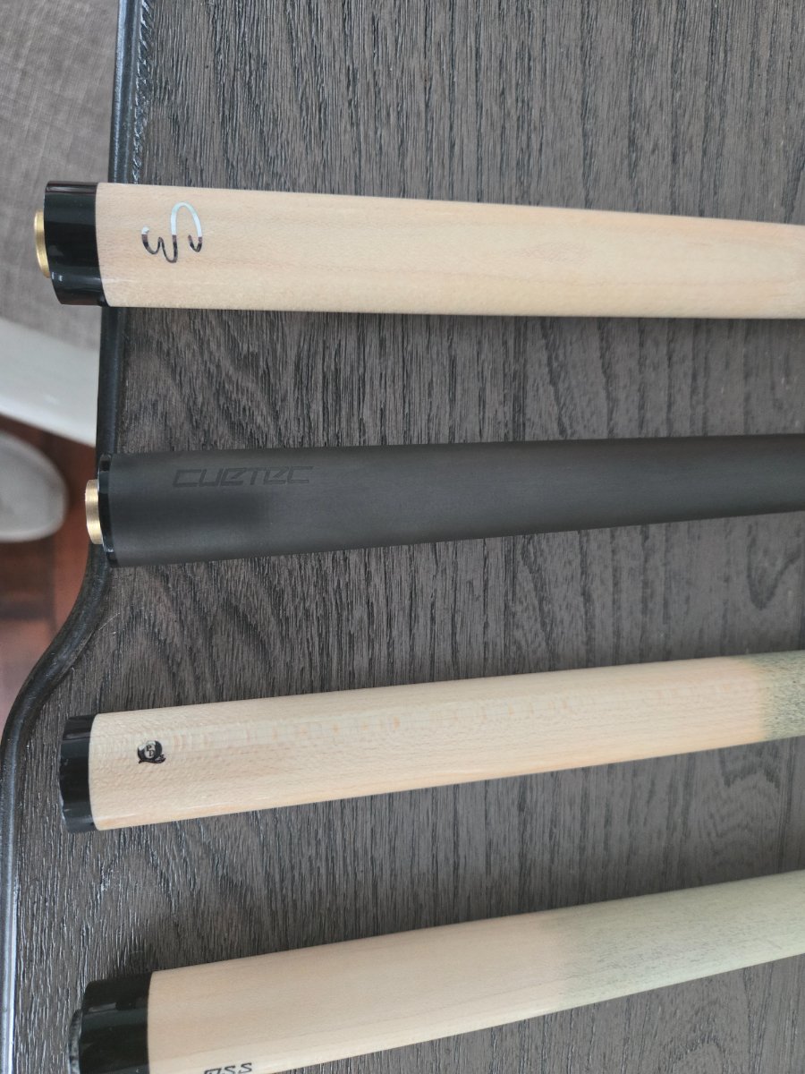 1) 29" Cuetec Cynergy 11.8 comes with box and original wipes. 5/16×14 great condition tiger sniper tip 375 obo