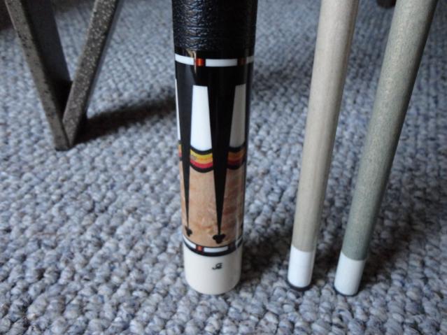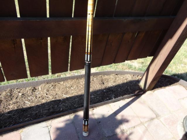Excellent ginacue 12a 59'' long Both shafts 13mm butt weighs 15.7 shafts 3.9 each. Cue is in great shape only flaw is chip in the clearcoat of the butt that you can see in the pics. I played with this cue for about 6mnths and it has some very light scratches on the ferrules. Cue is original from earnie and does need the one tip replaced. Asking 3500. Please pm me with questions or offers. Will look at trades but prefer money at the moment. Thanks Nate