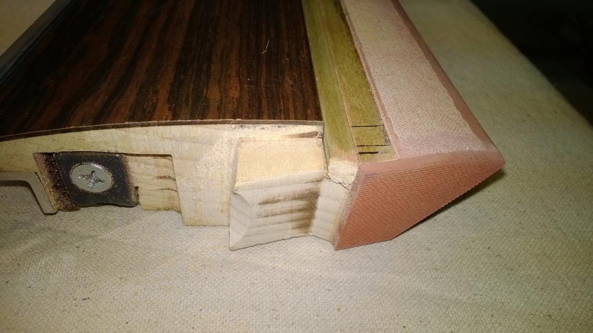 The biggest chore was modifying the rails. They had to be cut in half, and have the pockets angles cut into them. I also cut back the subrails, to correctly accept k55 cushions.
