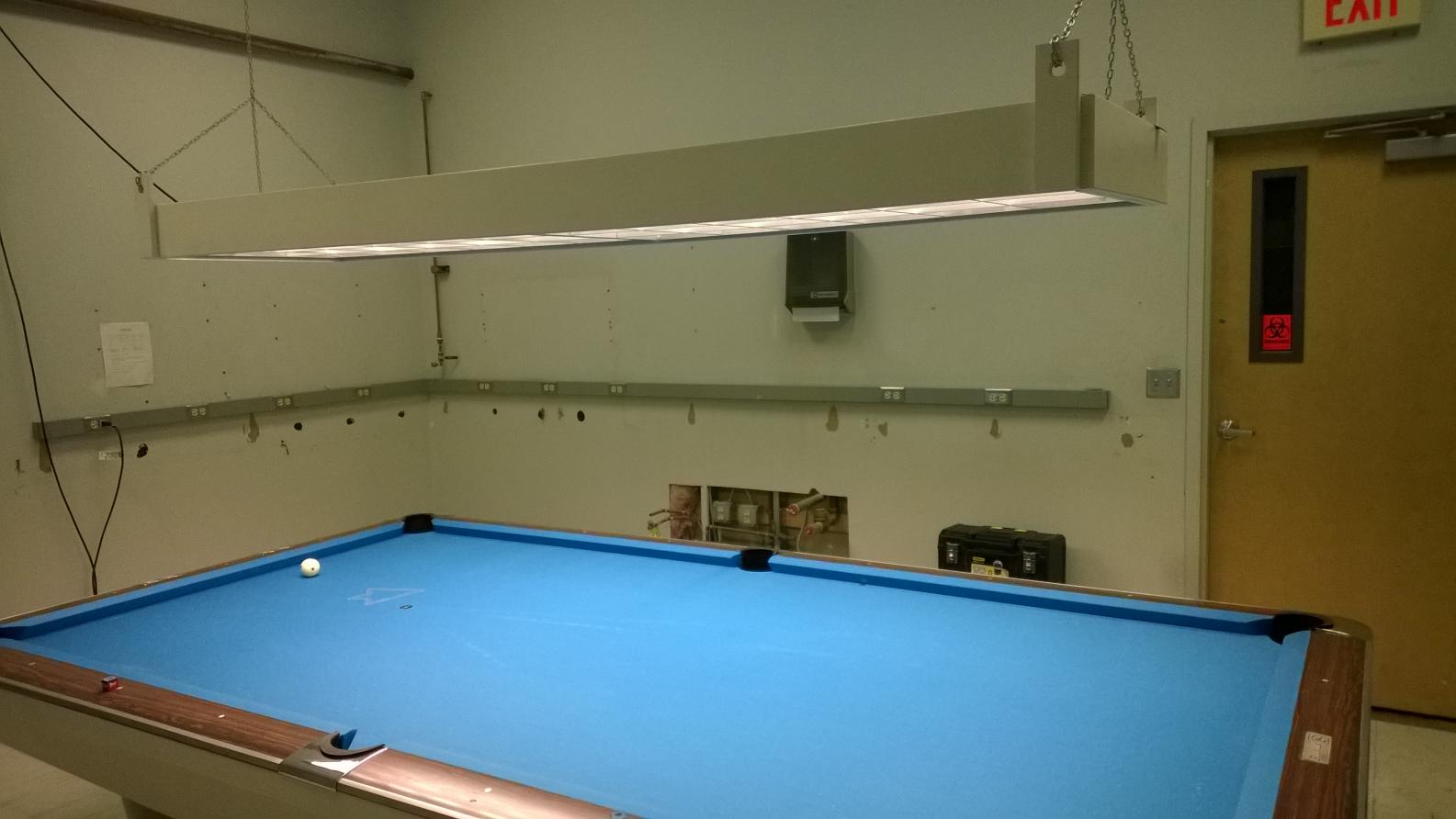A customer of mine wanted a 5x10 pocket table. The only 5x10 table that we could find locally, was a Gold Crown Carom table. The table was stored in the backroom of a poolhall, with less than desirable conditions. The roof had been leaking for years, and two of the aprons for this table were laying on the water-soaked carpeted floor. Fortunately, the slates and frame were stored upright, away from water-soaked areas.
