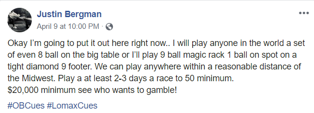Can it be enough difficulty to cause a few uncharacteristic misses. I can't see Bergman playing on a regular size pocket table....