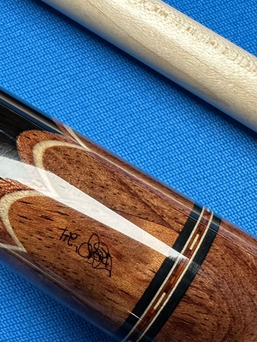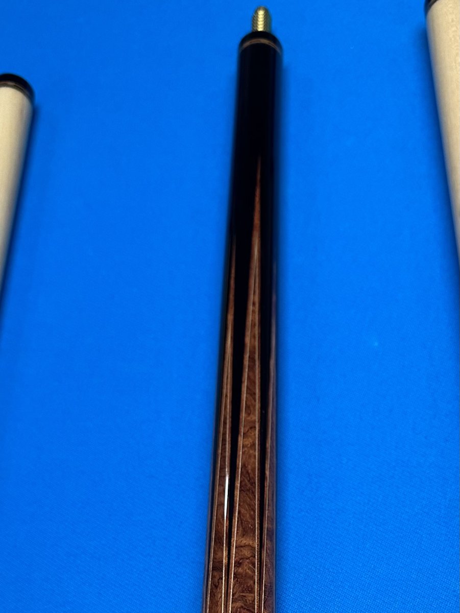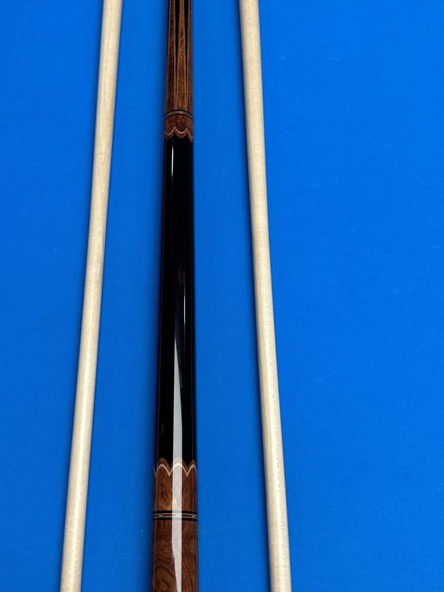 New 8 point Eric Crisp Sugartree w/2 shafts ebony and waterfall bubinga w/scallops .Shafts are 29" and 4.2 oz. 13.15 mm.Butt is 14.9 oz and 29" .Cue has 3/8-10 pin .This is really a beautiful cue and only one he ever made with waterfall and Ebony.$3950 shipped in United States