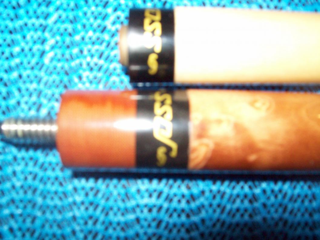 i have a 80's joss 58''long 5/16 pin its feels between 18 1/2 or 19oz birds eye maple irish wrap a brown micarta joint with black coller with gold joss logo rare you see alot of them with a steel joint. butt sleve has 4 ebony ovals with mother of pearl diamonds 1 shaft with gold joss logo it has some digs the finish is a little worn off around the black coller on the shaft with a white butt plate iam asking $350 or best offer plus shiping but it still looks good for being almost 30 yrs old.i took this joss cue to the pool hall tonight and it feels and hit's good this cue is straight together and apart it has alittle day light when you rolled the shaft but tip stays on table when you rolled it.thats the best joss's to get is from 80's on back to 70's.