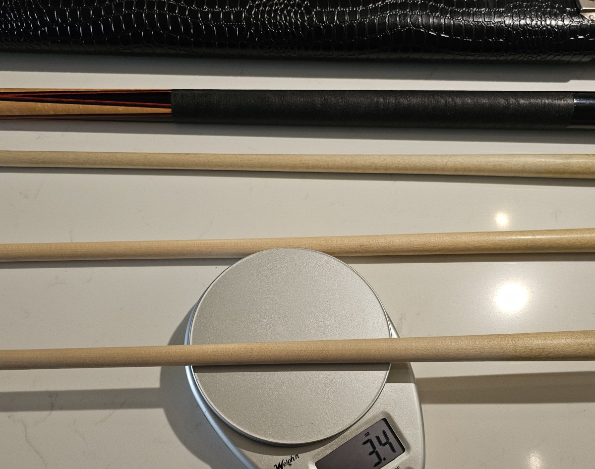 I have decided to sell my Tim Scruggs. It's an 80s model. Beautiful, sharp brown and red veneers. 3 original shafts. Cue specifics: