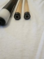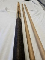 Black joint collars with small squared maple billet ringwork at the joint and both shafts