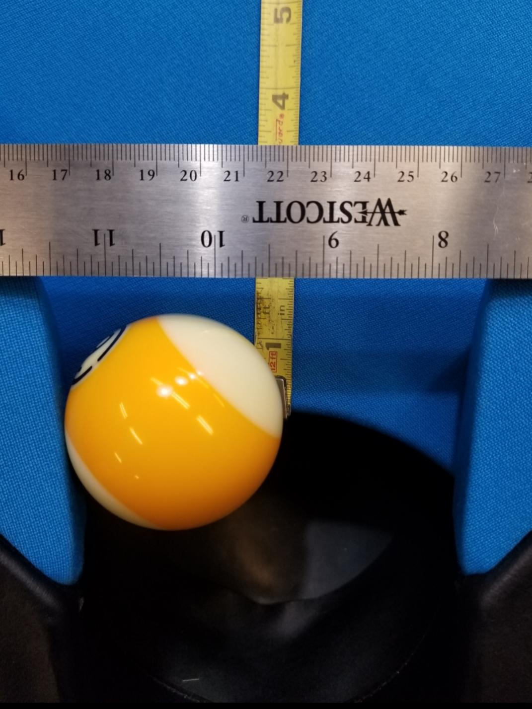 I took a picture of a stripe ball in one my my pro-am corners using 2.25" ball.