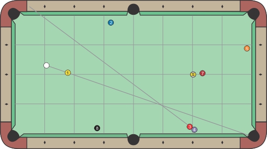 (22) bank 1 into 4 to throw 3 into corner